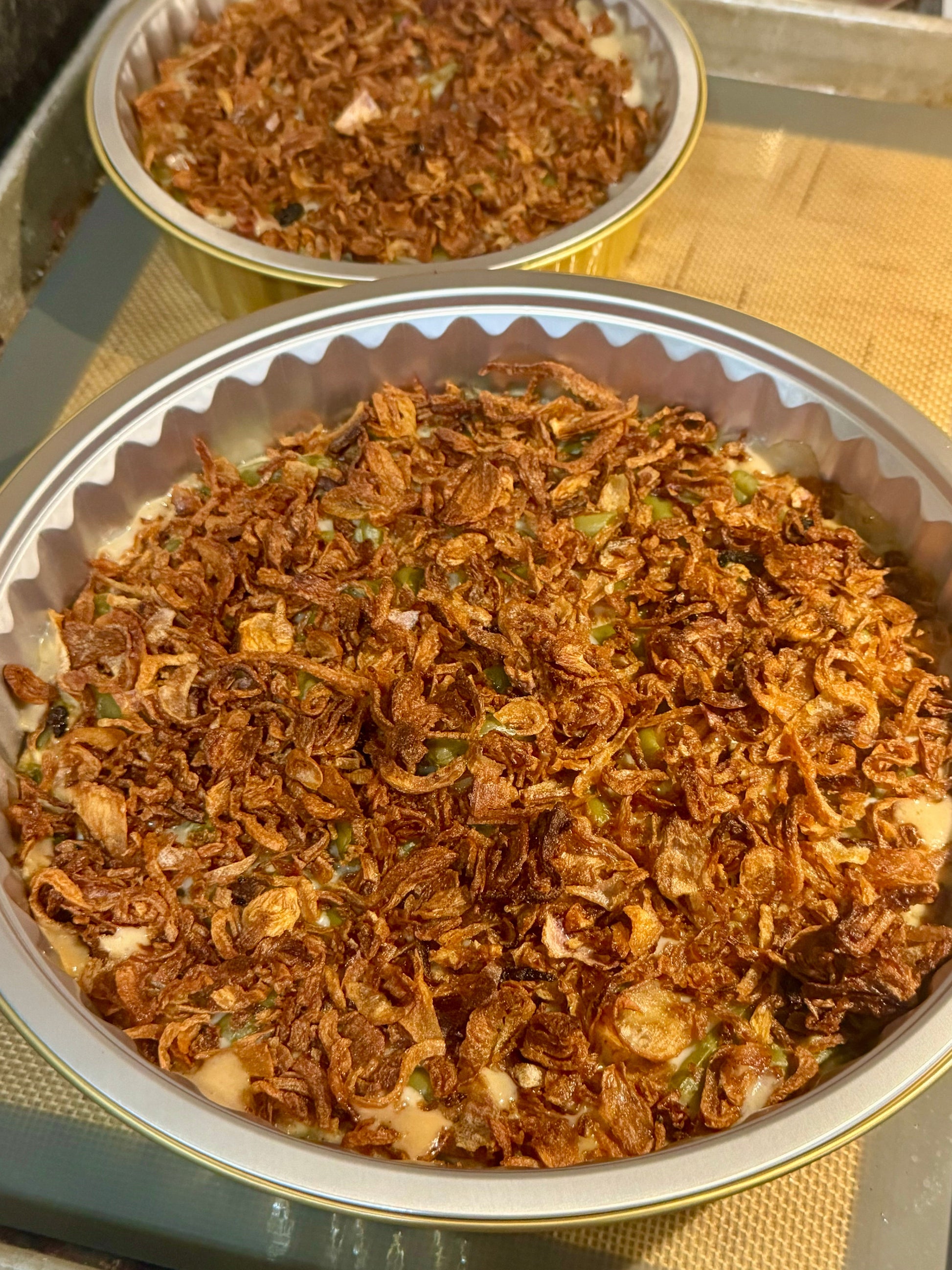 Classic green bean casserole, just like the good ol’ days: a trifecta of green beans, creamy mushroom soup, and crispy fried onions!